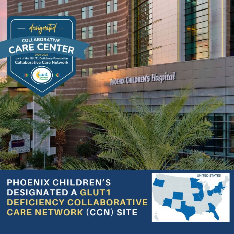 Phoenix Children’s is officially a GLUT1 Deficiency Collaborative Care Network site, highlighting their expertise in rare neurological care and ketogenic diet therapy in partnership with Barrow Neurological Institute. This designation reflects Phoenix Children’s commitment to providing comprehensive, multidisciplinary care for children with GLUT1 Deficiency Syndrome, which is a rare genetic disorder affecting glucose transport in the brain. The collaboration aims to enhance patient outcomes and support families affected by this condition.